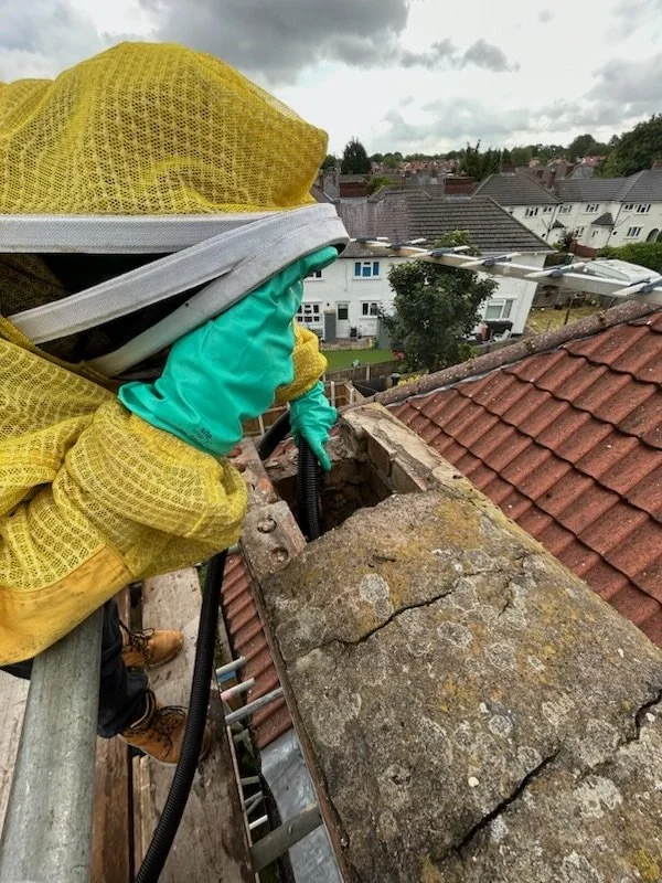 Our team expertly removes honey bee colonies from chimneys, relocating them into a bee hive.